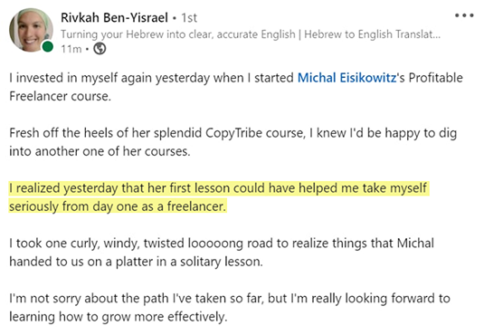 The most rewarding part is watching freelancers show up uncertain about their business skills — and walk away confident, capable, and earning more money with less stress.