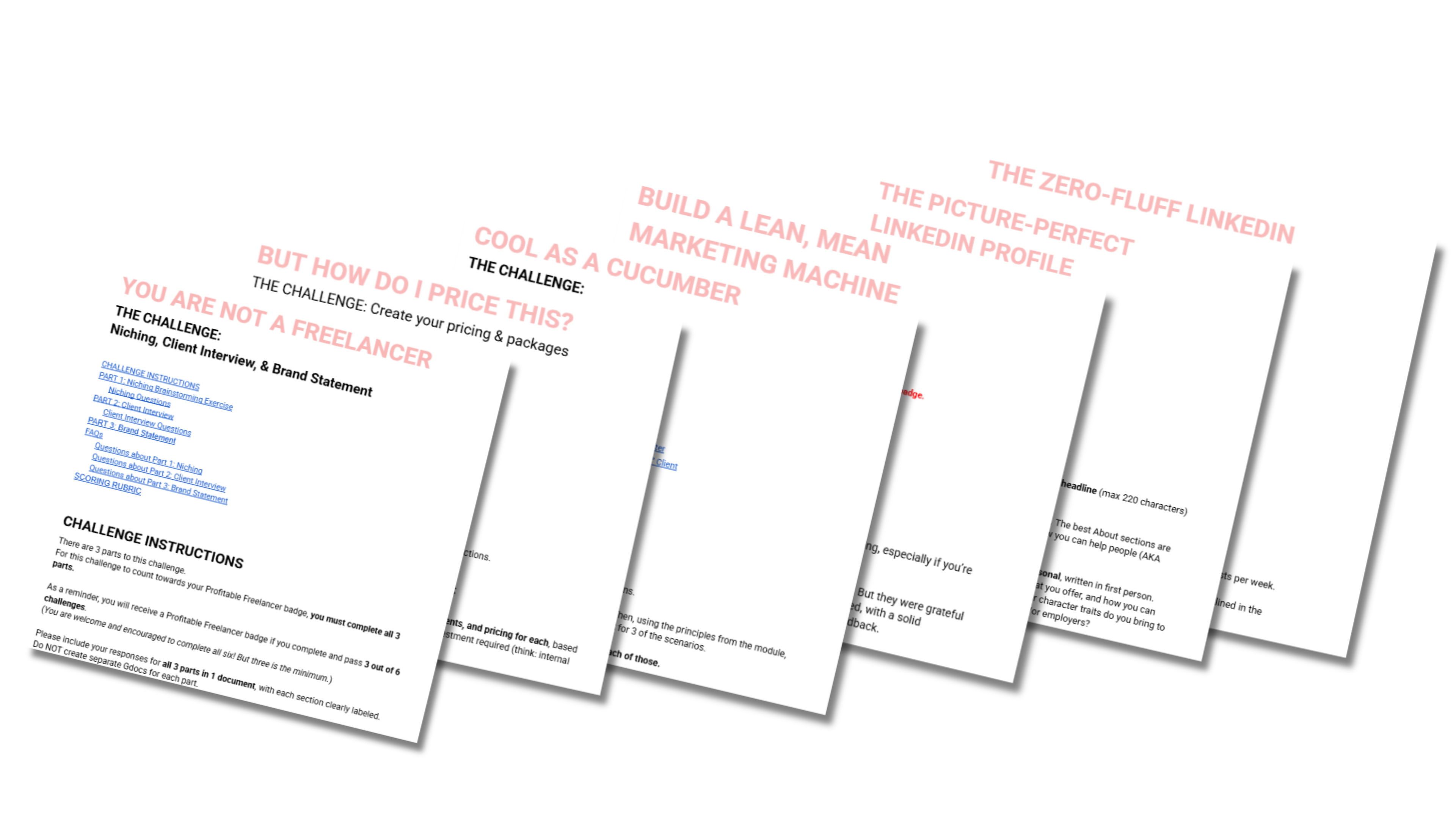 Enroll in Profitable Freelancer and get everything you need to run a lucrative, low-stress freelance business: